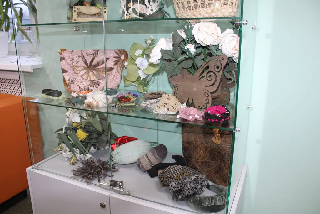 На выставке вниманию зрителей представлены шикарные женские броши, изящные украшения на голову, картины, цветочные композиции из фоамирана, чеканка и вышивка. Всего более тридцати творческих работ, которые очаровывают с первых мгновений.