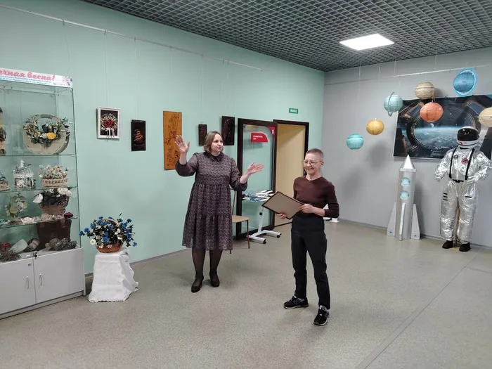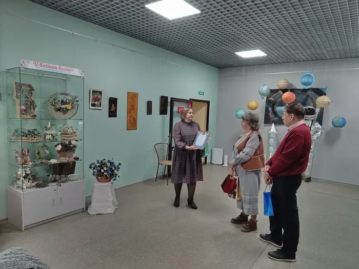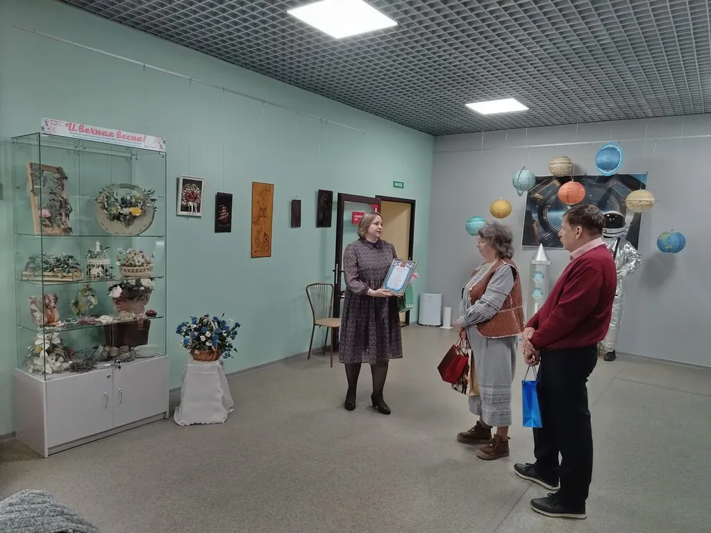 На мероприятии праздничное настроение мастерам и гостям встречи подарил ансамбль «Веселые ложкари» Удомельской детской школы искусств, руководитель Ирина Белова. А директор центральной библиотеки им. Н.А. Зворыкина Н.А. Арипова вручила памятный подарок мастерам Мамаевым и тепло поздравила их с открытием выставки.